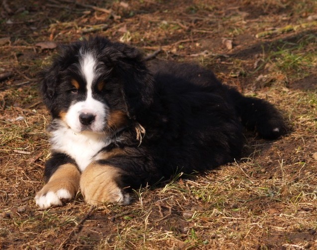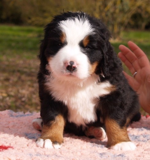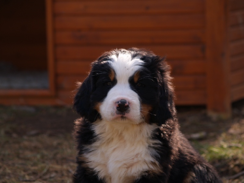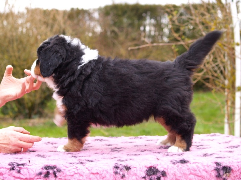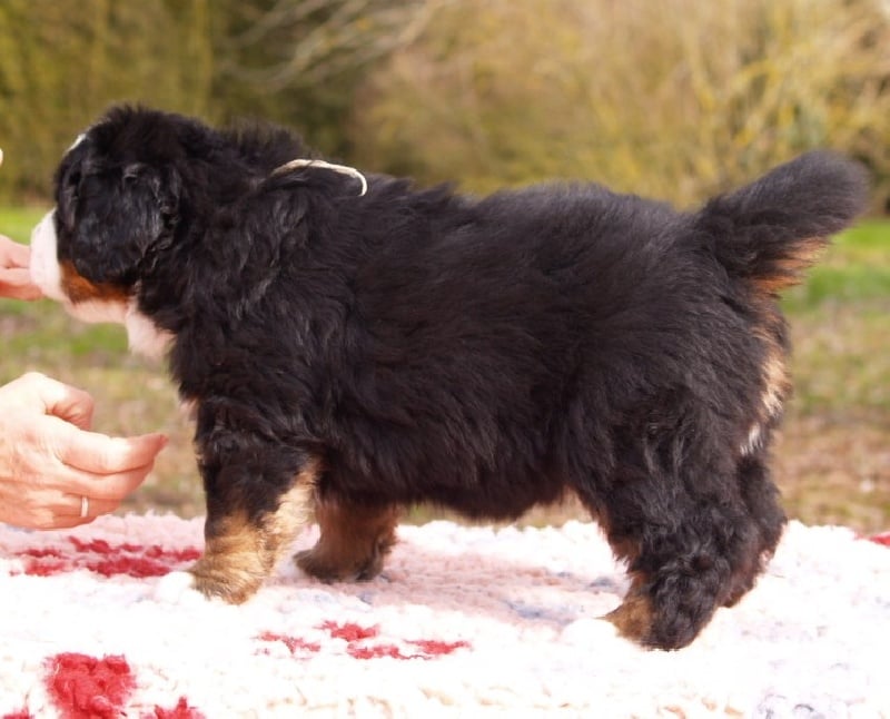 26 janvier : Déjà 1 semaine , tout le monde grossit correctement avec un poids qui tourne autour d'1 kg . On peut voir quelques jolies têtes qui devraient être puissantes . 2 février: On marche enfin on essaie ... on commence à ouvrir les yeux ....on saura d'ici quelques jours la couleur .... Tout le monde grossit tout à fait correctement avec un biberon de temps en temps pour aider la maman. 23 Février: 5 semaines et on commence à voir des différences . Un petit loup a un magnifique oeil bleu , il a très rapidement trouvé une famille . les quelques tâches blanches dans le cou commencent à vraiment diminuer et on commence à voir les constructions et le mouvement ainsi que quelques têtes vraiment très belles . Tous les chiots ont trouvé une famille . 11 Mars : A la suite d'un désistement , un petit mâle est à nouveau disponible .Je me suis sans doute mal exprimée, un seul chiot cherche une famille mais entre le violet et le blanc je ne sais pas encore lequel.